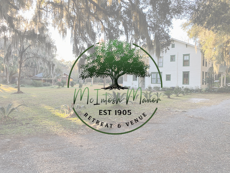 McIntosh Manor Retreat and Venue is located in beautiful coastal Georgia along historic Hwy 17. Nestled beneath majestic live oaks, this property offers a peaceful setting where guests can slow down and enjoy the natural beauty of the area. The 13 acre property is shaded by towering oak trees draped in classic Southern Spanish moss, creating a quiet and timeless atmosphere.